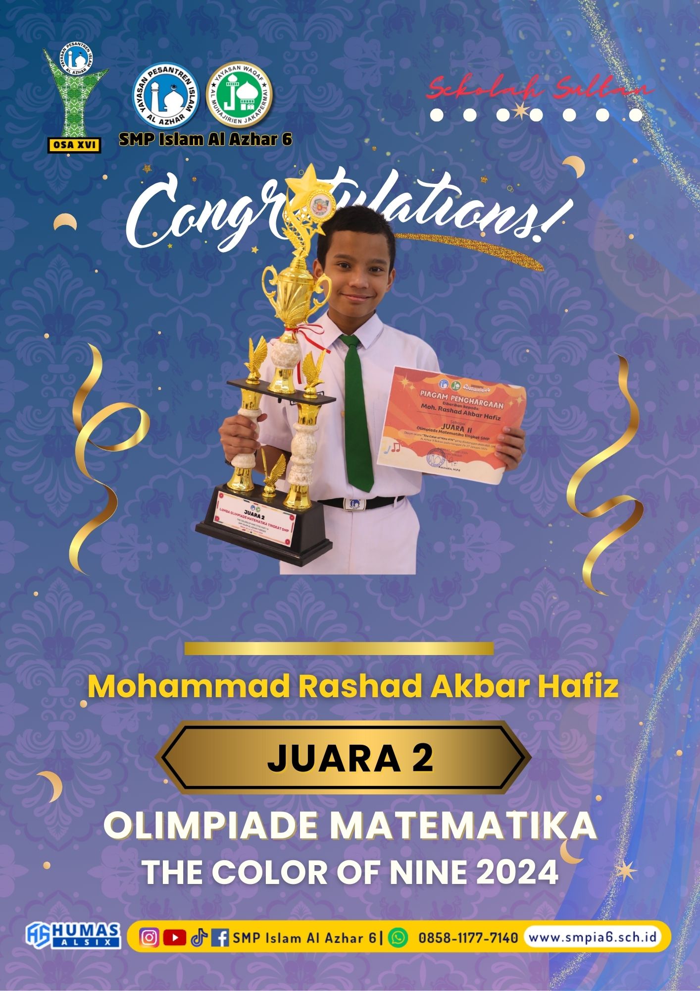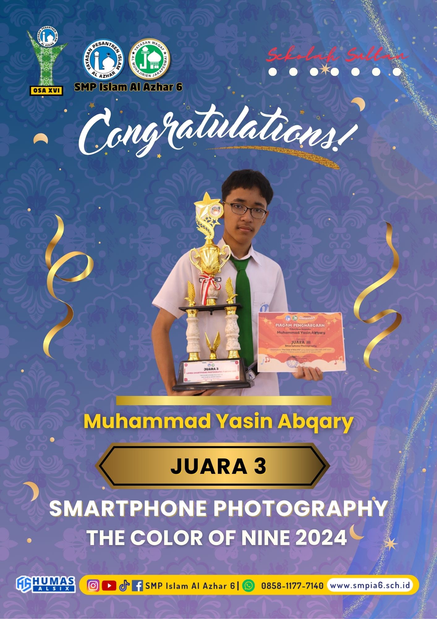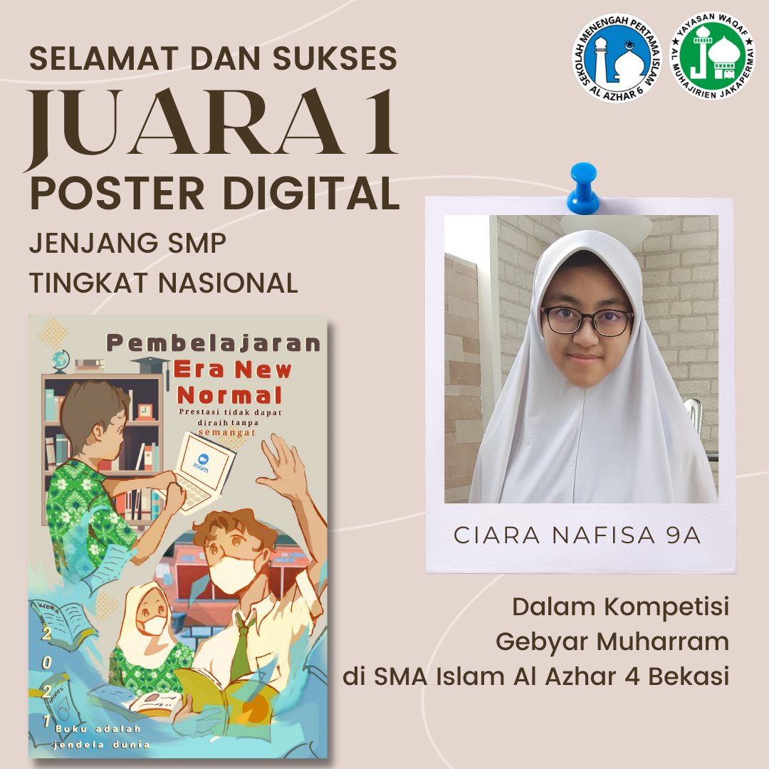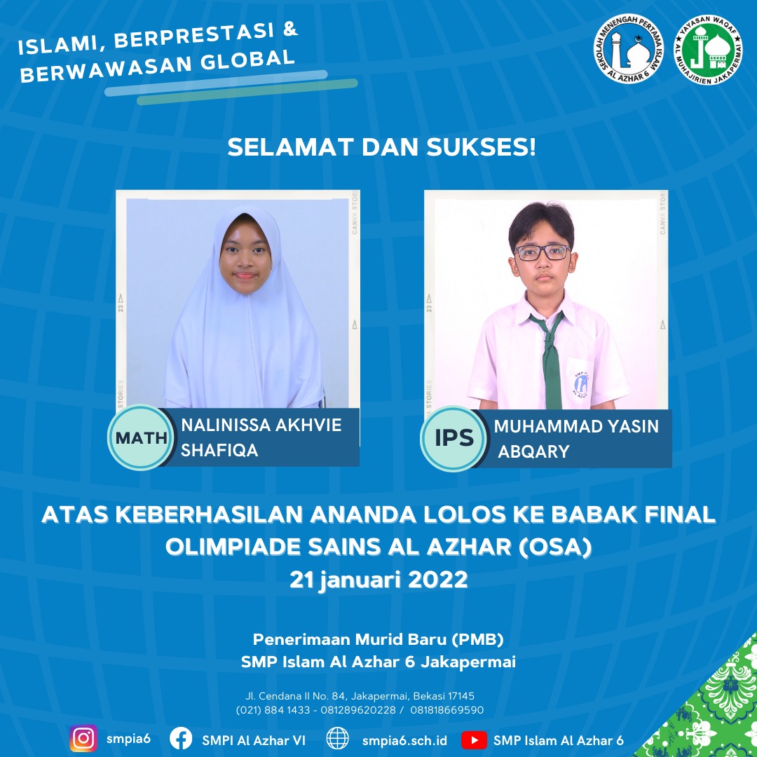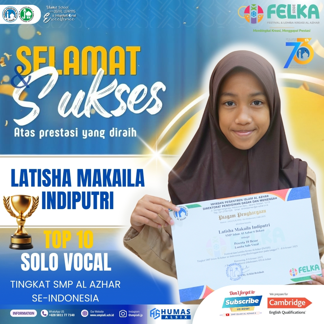 Bismillaah, SMP Islam Al-Azhar 6 Jakapermai merupakan sekolah kebanggaan saya. Di sana saya belajar bahwa hal yang terpenting bukan hanya pengetahuan kognitif saja, melainkan cara untuk menjadi pribadi taat beragama serta menghormati orang dan lingkungan sekitar saya.