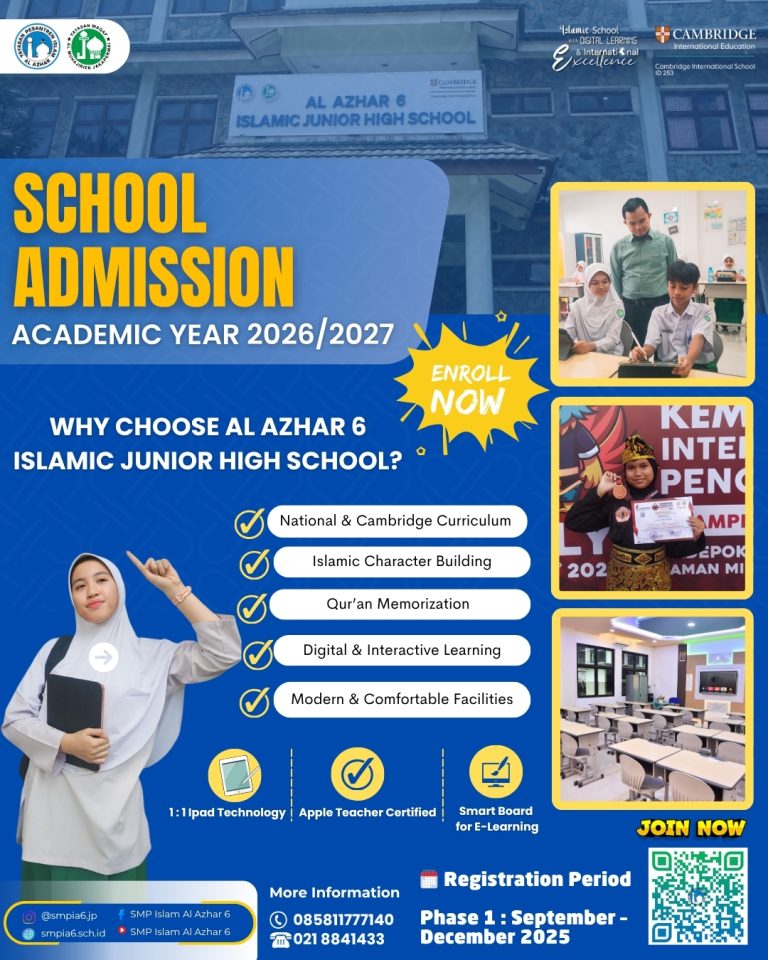 At Al Azhar 6 Islamic Junior High School, we provide more than just education we create a nurturing environment where knowledge, character, and faith grow together. Supported by modern facilities and a team of passionate, professional educators, our school ensures that every student not only excels academically but also develops strong moral and spiritual values.